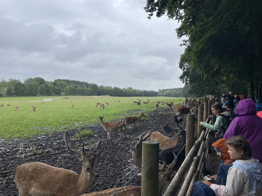Wenngleich die Gruppe in Poing leichten Regen in Kauf zu nehmen hatte und die Greifvogelvorführung auf Grund dessen nicht stattfinden konnte, war die Begeisterung spürbar groß. Im äußerst großzügig angelegten Waldareal des Parks können sich die Wildtiere wie Mufflons und Damhirsche frei bewegen und kamen so ohne große Scheu sehr nahe an die Besucher aus dem Bayerwald heran. Ob Hirsche, Ziegen oder Ponys – die Kinder konnten viele Tiere füttern und streicheln. Im wahrsten Sinne des Wortes waren das originale Begegnungen, die viele so nicht jeden Tag haben. Aber auch die Braunbären, Wölfe und Luchse sorgten wie die quicklebendigen Fische für großes Staunen.